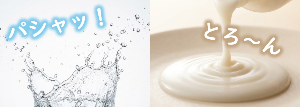 化粧品のLPやパッケージを見ると、「とろ~ん」「すーっ」「ぴたっ」といった言葉が溢れています。